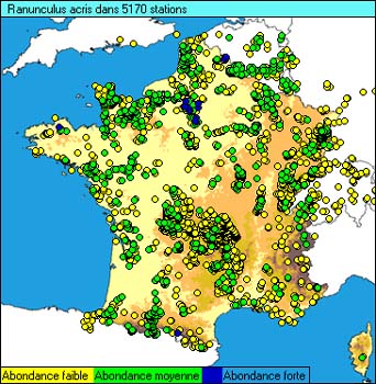 OBS Nombre de relevés contenant la plante LOC Nombre de relevés localisés DIS Nombre de relevés ayant des coordonnées distinctes QDR Nombre de quadrats de 1km2 contenant la plante COC Nombre de plantes co-occurentes