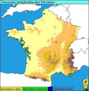 OBS = 399 LOC = 269 DIS = 164 QDR = 105 COC = 638 ![]() OBS Nombre de relevés contenant la plante LOC Nombre de relevés localisés DIS Nombre de relevés ayant des coordonnées |