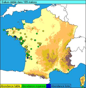 OBS = 299 LOC = 292 DIS = 189 QDR = 138 COC = 618 ![]() OBS Nombre de relevés contenant la plante LOC Nombre de relevés localisés DIS Nombre de relevés ayant des coordonnées |
