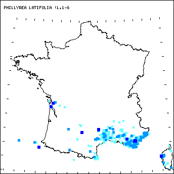 PHILLYREA LATIFOLIA (L. 1-6 présent dans 1298 stations